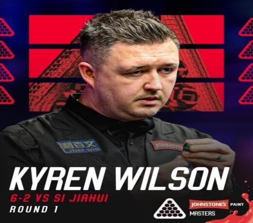 斯诺克大师赛首轮,斯佳辉不敌凯伦·威尔逊,无缘晋级8强。全场比赛,凯伦·威尔逊打出两杆破百(101、105)和两杆50+(80、59),斯佳辉在第三局打出单杆97分上半场,威尔逊取得3比1的领先优势,休息归来后斯佳辉扳回一城,随后威尔逊表现出优秀的连续得分能力,连下三城结束比赛最终,凯伦·威尔逊6比2战胜斯佳辉晋级八强,静待尼尔·罗伯逊与克里斯·韦克林的胜者。